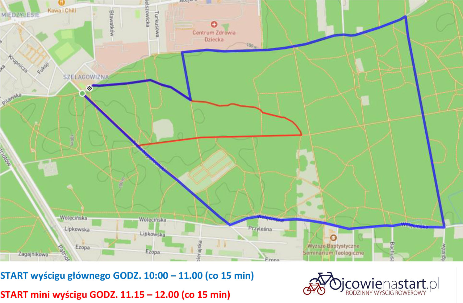 START wyścigu GŁÓWNEGO GODZ. 10:00 - 11:00 (co 15 min)